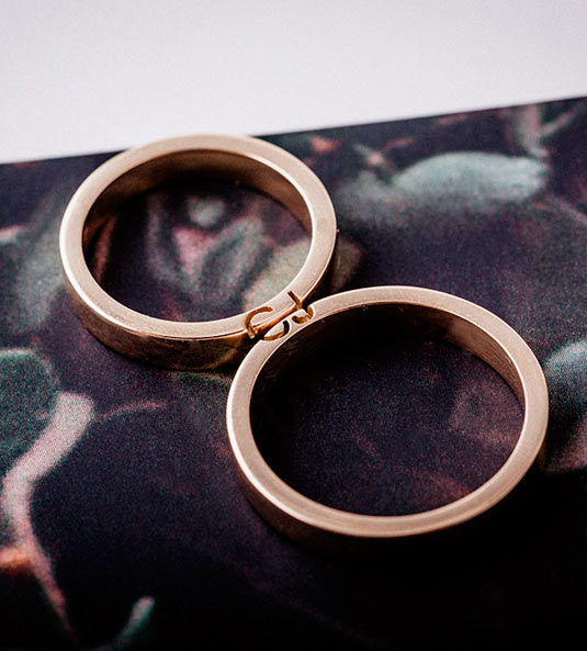 Alianzas, todas ellas, de formas muy sencillas y geométricas, realizadas en oro de 18 quilates y con un elegante acabado en matizado realizado por la técnica de chorro de arena.