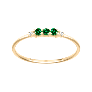 Anillo realizado en oro amarillo de 18 quialtes, con esmeralda redonda facetada y diamantes talla brillante, engastado en garras y en diseño trilogy.
